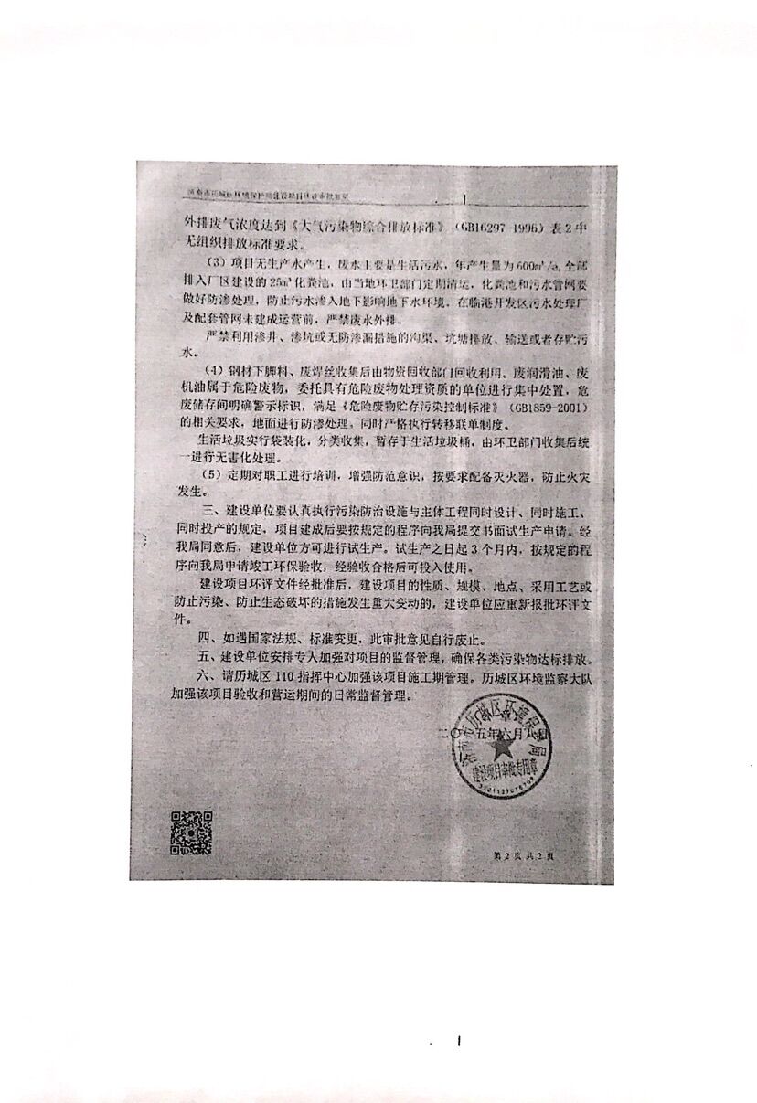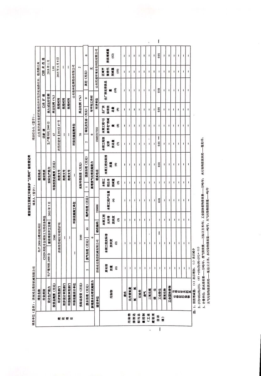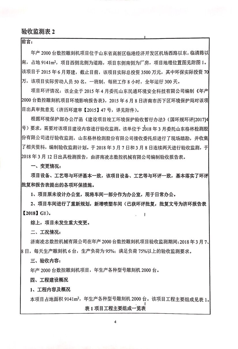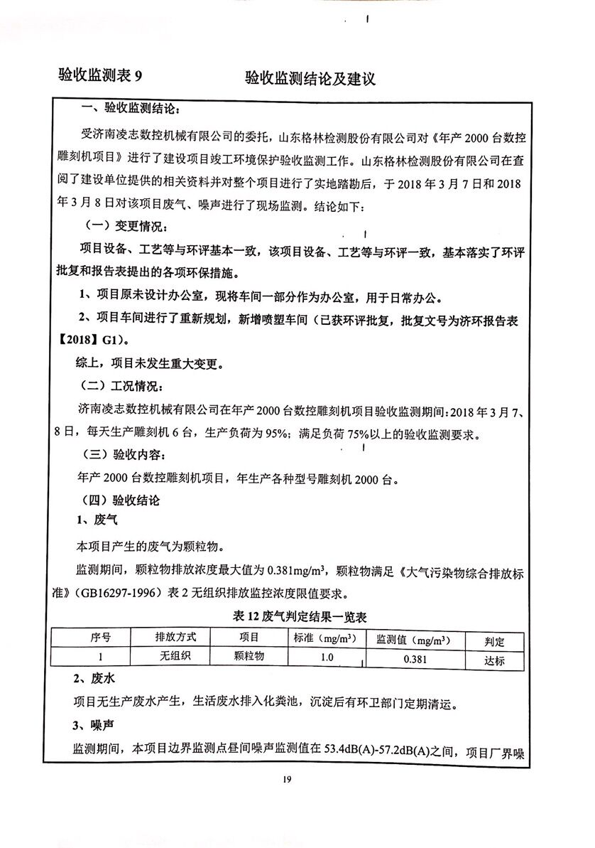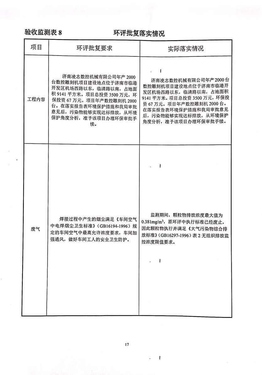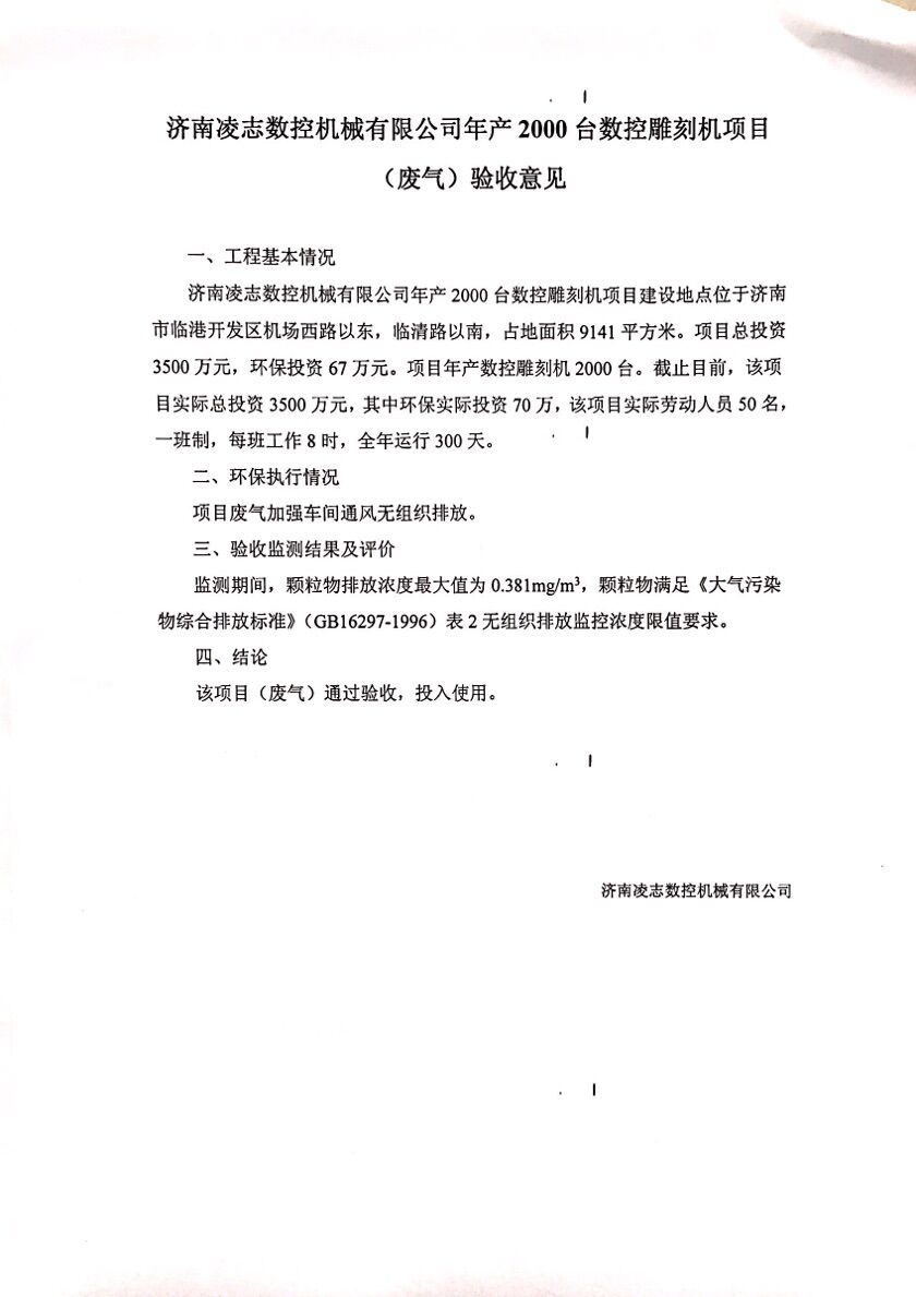 濟南凌志數控機械有限公司年產2000臺數控雕刻機項(廢氣)驗收意見目