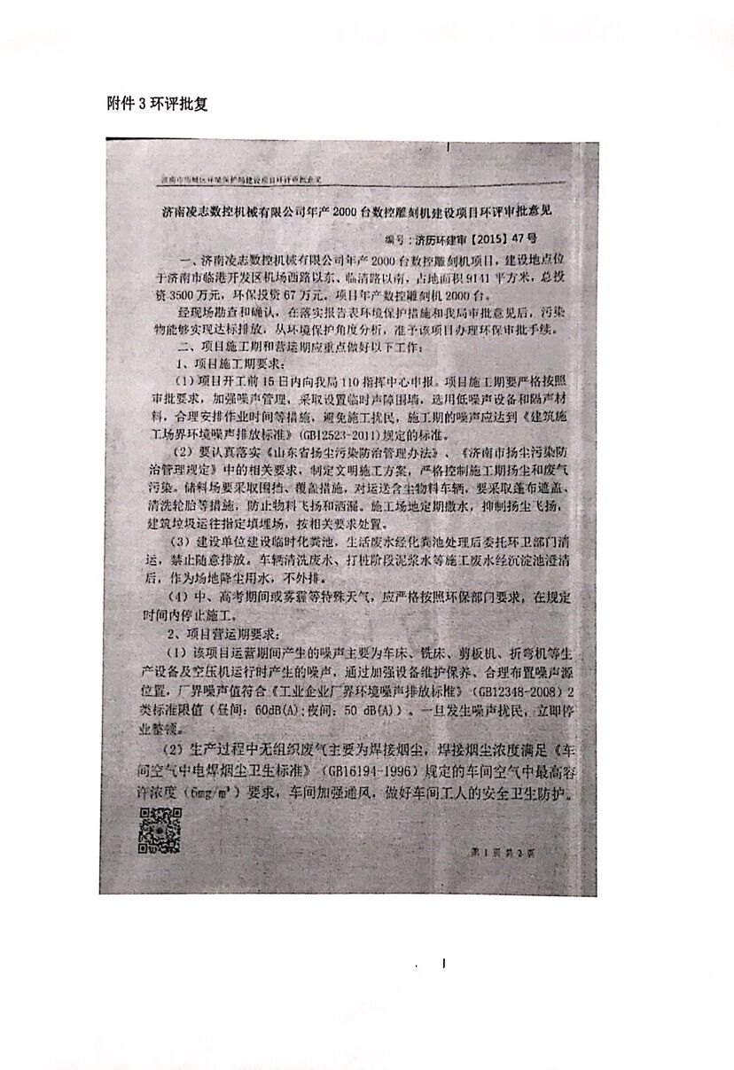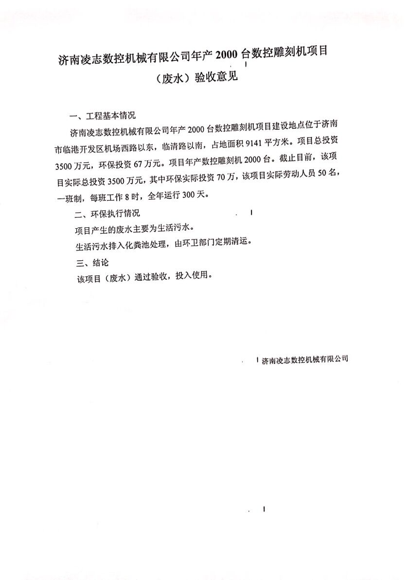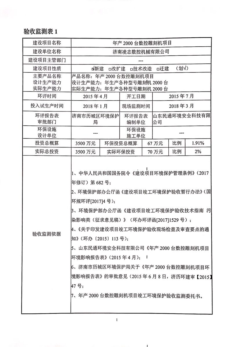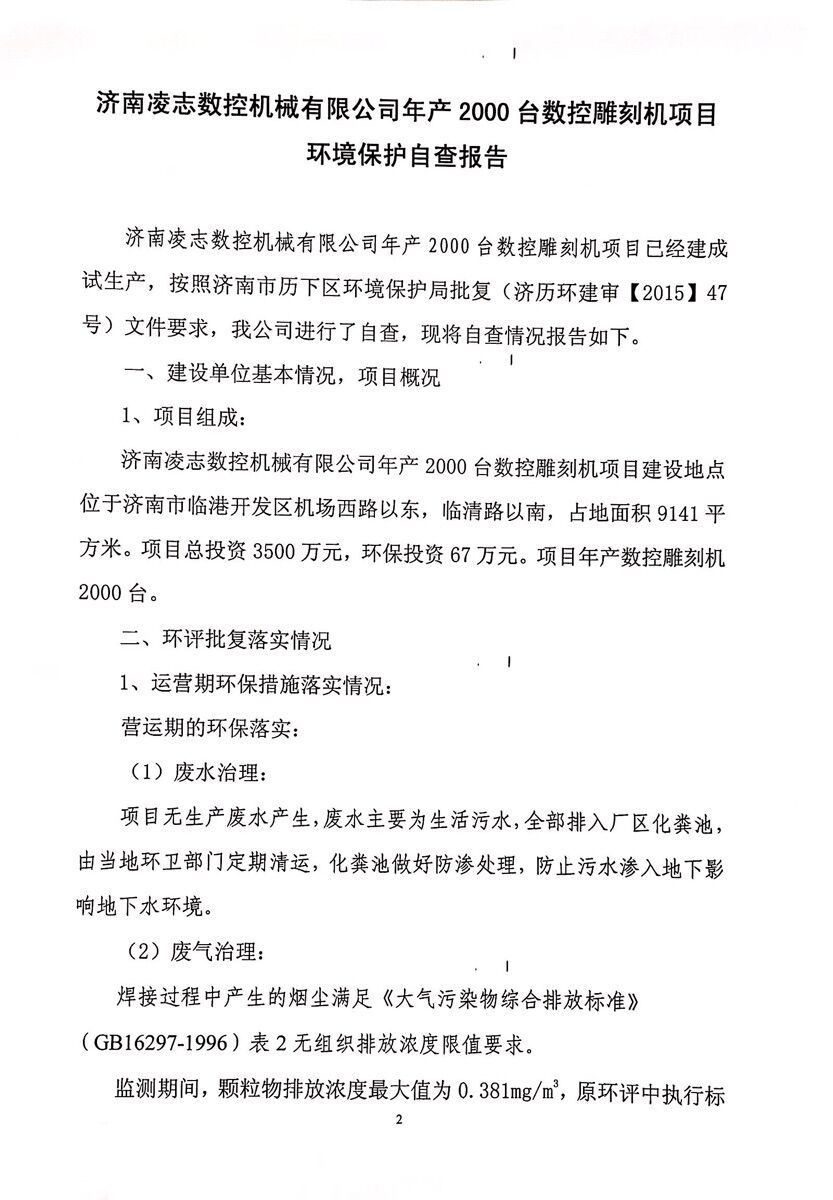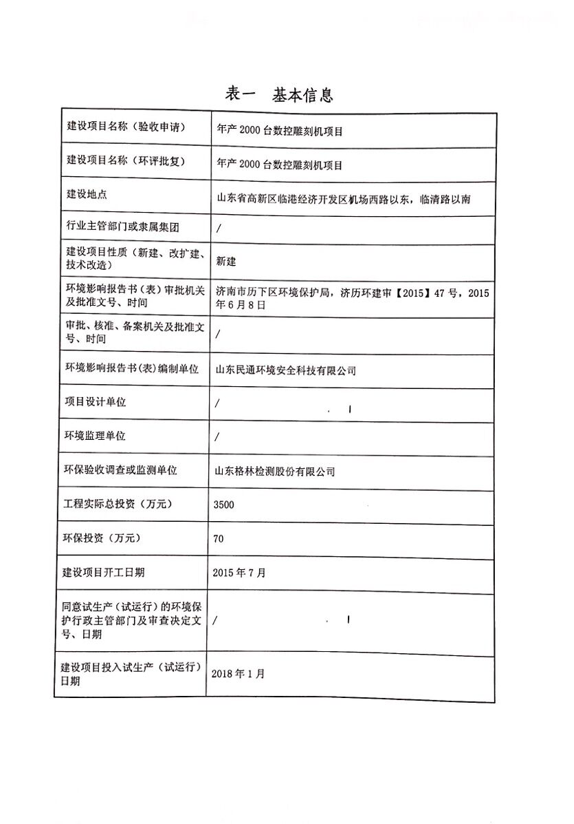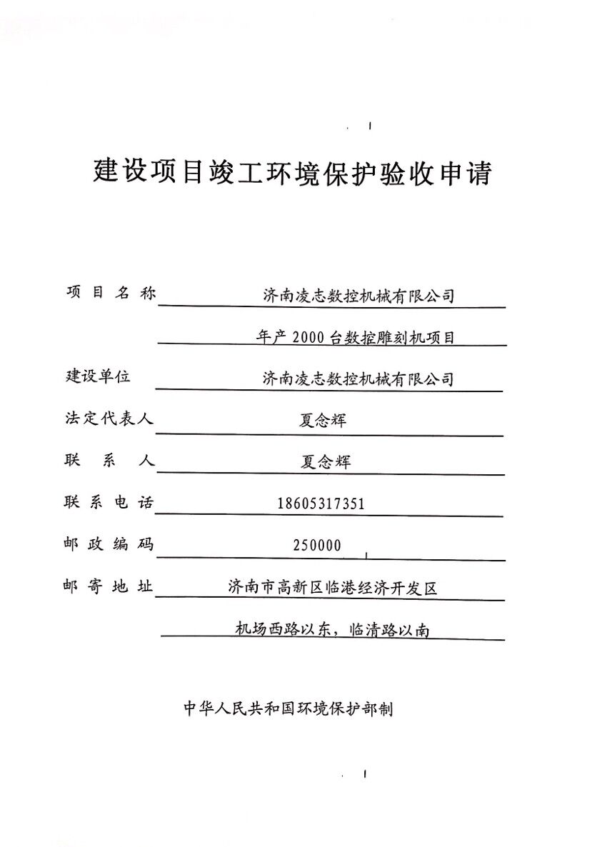 濟南凌志數控機械有限公司年產2000臺數控雕刻機項目環評驗收公示